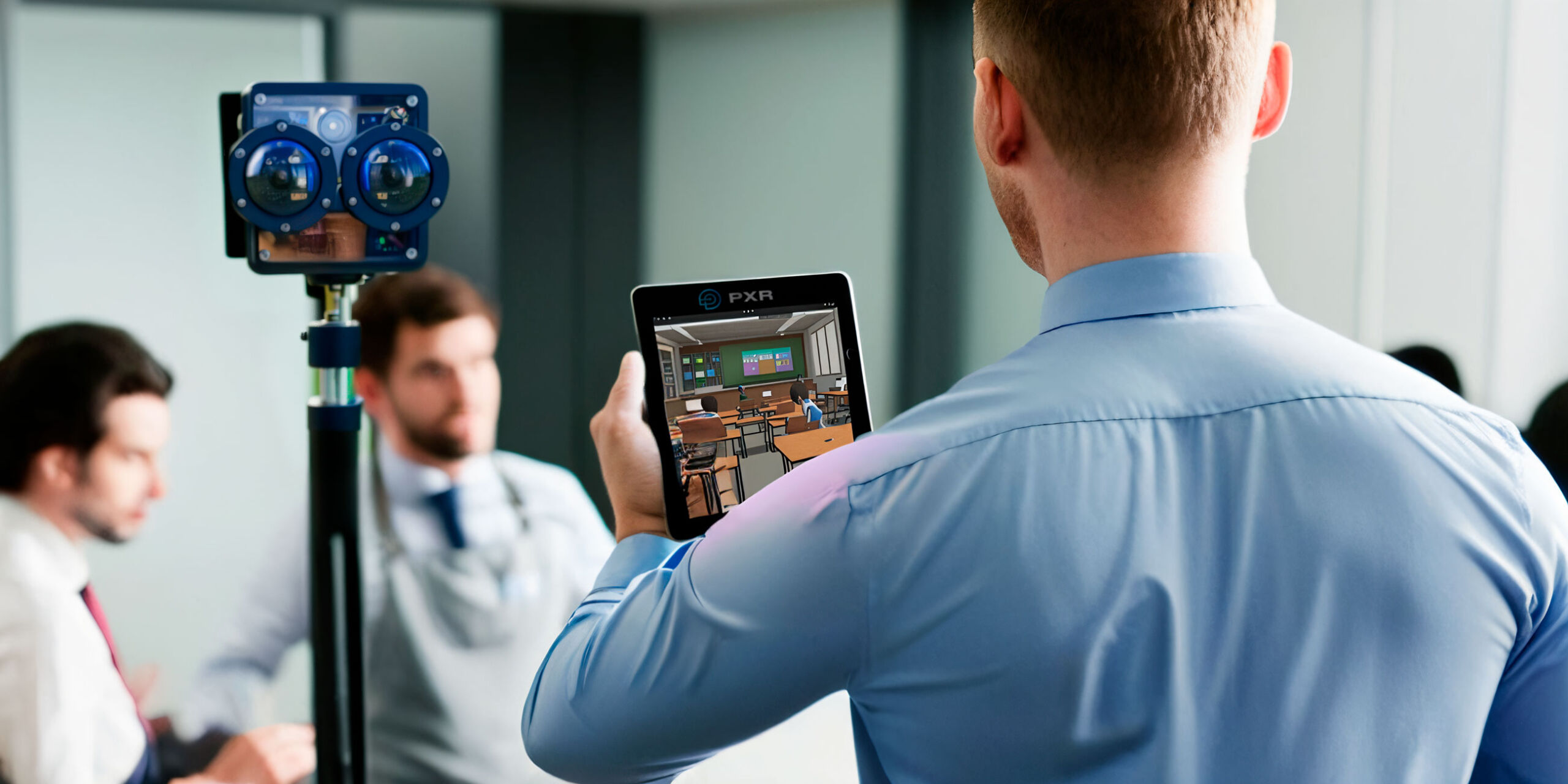 Gracias a la cámara desarrollada por PXR y las gafas de realidad mixta, es posible fusionar ambos mundos y cambiar de ubicación instantáneamente, integrando activos para visualizarlos en ambas localizaciones. Esto optimiza el diseño, la organización, la formación y otros procesos.